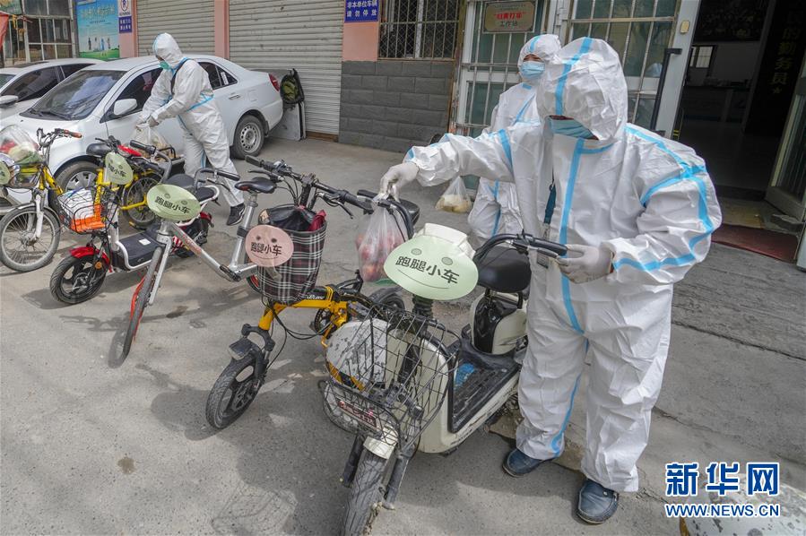 8月3日,在烏魯木齊天山區(qū)西河壩前街社區(qū),社區(qū)工作人員準備騎上”跑腿小車“為居民送去生活物品。新疆烏魯木齊市天山區(qū)西河壩前街社區(qū)主次干道較多,院落分布分散。新冠肺炎疫情防控期間,社區(qū)整合現(xiàn)有資源,將暫時閑置的自行車、電動車集中起來,貼上“跑腿小車”標識,成立便民服務(wù)隊,社區(qū)工作人員通過“跑腿小車”可將居民網(wǎng)絡(luò)定制的“菜袋子”“藥盒子”快速送達,給居民帶來方便。新華社記者趙戈攝
