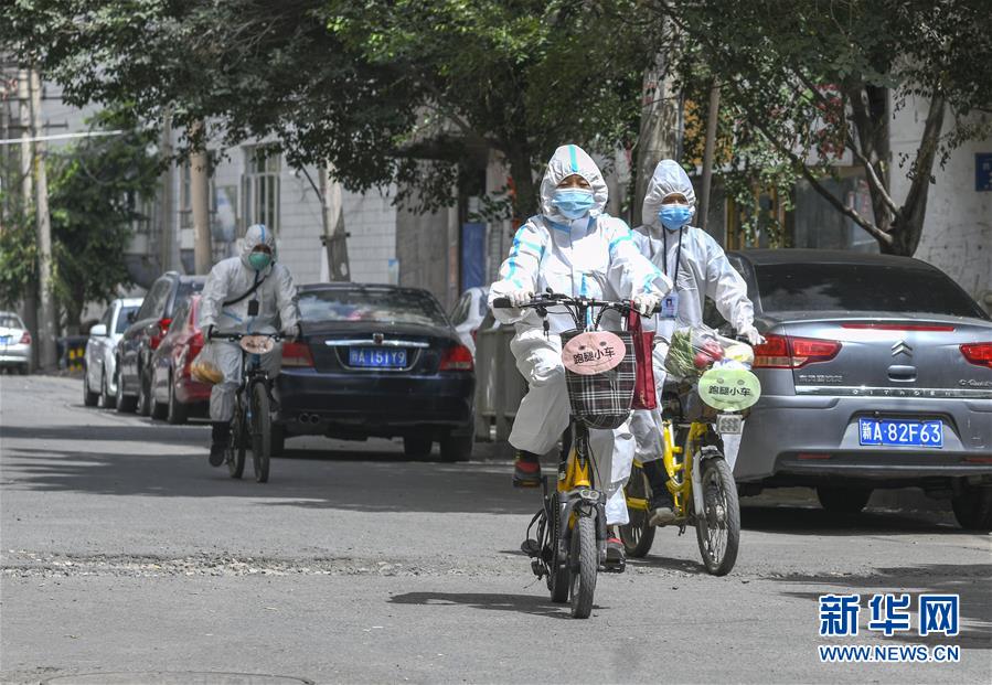 8月3日,在烏魯木齊天山區(qū)西河壩前街社區(qū),社區(qū)工作人員騎著”跑腿小車“為居民送去生活物品。新疆烏魯木齊市天山區(qū)西河壩前街社區(qū)主次干道較多,院落分布分散。新冠肺炎疫情防控期間,社區(qū)整合現(xiàn)有資源,將暫時閑置的自行車、電動車集中起來,貼上“跑腿小車”標(biāo)識,成立便民服務(wù)隊(duì),社區(qū)工作人員通過“跑腿小車”可將居民網(wǎng)絡(luò)定制的“菜袋子”“藥盒子”快速送達(dá),給居民帶來方便。新華社記者趙戈攝
