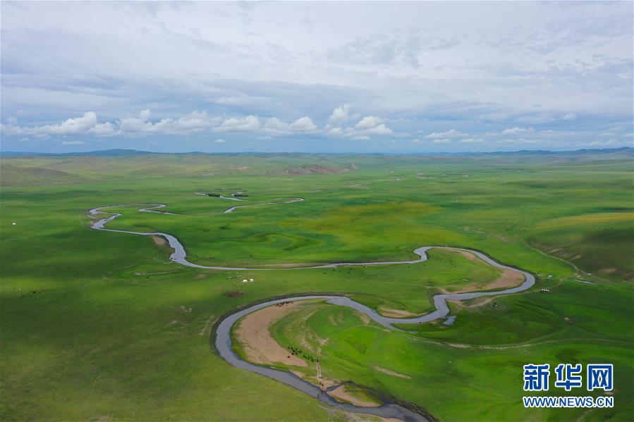 這是在呼倫貝爾陳巴爾虎旗牧云山頂拍攝的莫日格勒河(8月3日攝,無人機照片)。今年暑期,內(nèi)蒙古呼倫貝爾通過暫行周末2.5天彈性休假工作制度,發(fā)放旅游、餐飲消費券,景區(qū)推出優(yōu)惠促銷活動等措施,提振當?shù)芈糜问袌觥P氯A社記者徐欽攝