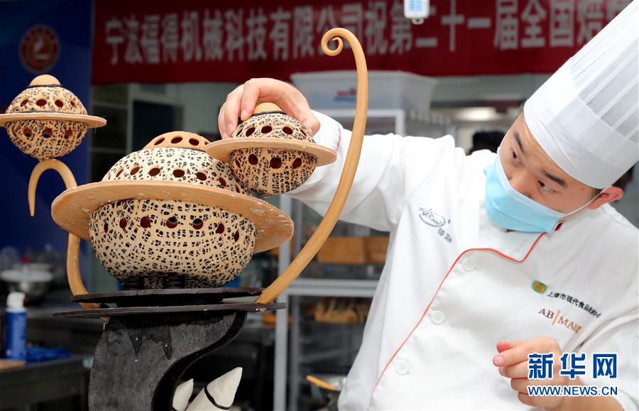 8月5日,糖藝比賽參賽選手在創(chuàng)作中。當(dāng)日,第二十一屆全國焙烤職業(yè)技能競賽上海賽區(qū)選拔賽,在上海市現(xiàn)代食品職業(yè)技能培訓(xùn)中心舉行,來自上海、江蘇、浙江等地的近60名焙烤行業(yè)技師,在藝術(shù)面包、傳統(tǒng)糕點(diǎn)、糖藝和藝術(shù)巧克力等項(xiàng)目中進(jìn)行比拼,在充滿焙烤香氣的賽場上展現(xiàn)技藝。新華社記者方喆攝