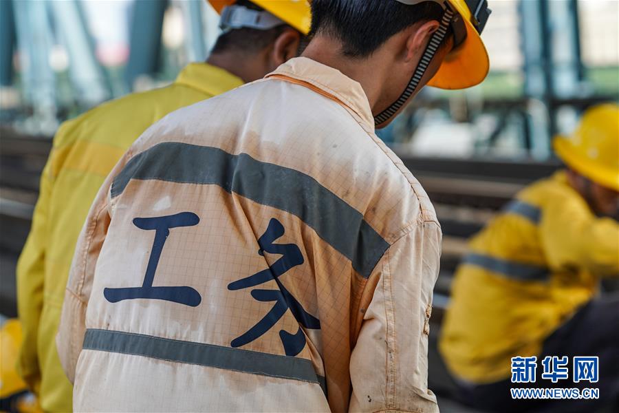 8月6日,橋隧工的工作服在作業(yè)時被汗水浸濕。新華社記者李博攝