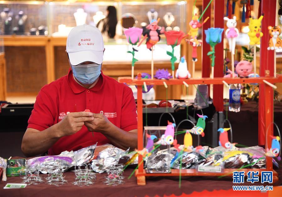 8月8日,在第十八屆中關(guān)村國際美食節(jié)美食美酒嘉年華文創(chuàng)非遺展示區(qū),工作人員制作面塑。新華社記者 任超 攝