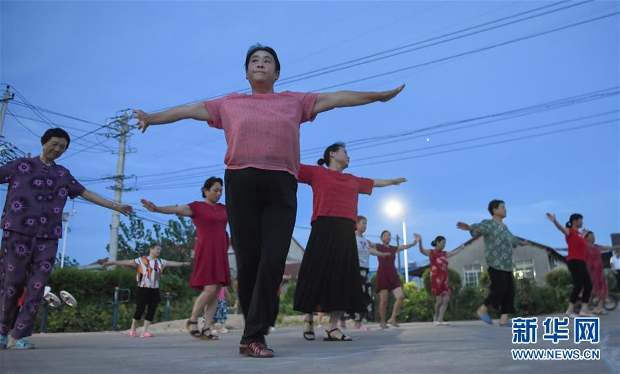 鄂州市長(zhǎng)港鎮(zhèn)峒山村村民在鍛煉身體(8月6日攝)。新華社記者 程敏 攝