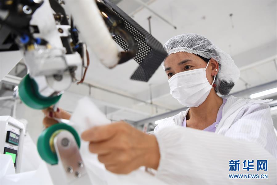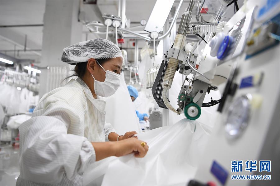 8月9日,甘肅拓奇扶貧車間的員工在服裝加工生產(chǎn)線上作業(yè)。甘肅拓奇扶貧車間位于甘肅省臨夏回族自治州積石山縣,是依托東西部扶貧協(xié)作平臺(tái)引進(jìn)的服裝加工企業(yè)。扶貧車間建成投產(chǎn)以來(lái)帶動(dòng)就業(yè)近300人,其中吸納建檔立卡貧困戶就業(yè)110人,實(shí)現(xiàn)了貧困群眾就地就近就業(yè)增收的目的,為助推當(dāng)?shù)孛撠毠?jiān)及縣域經(jīng)濟(jì)發(fā)展發(fā)揮了重要作用。新華社記者陳斌攝。