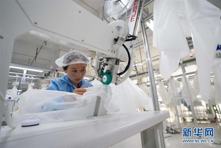 8月9日,甘肅拓奇扶貧車間的員工在服裝加工生產(chǎn)線上作業(yè)。甘肅拓奇扶貧車間位于甘肅省臨夏回族自治州積石山縣,是依托東西部扶貧協(xié)作平臺引進的服裝加工企業(yè)。扶貧車間建成投產(chǎn)以來帶動就業(yè)近300人,其中吸納建檔立卡貧困戶就業(yè)110人,實現(xiàn)了貧困群眾就地就近就業(yè)增收的目的,為助推當?shù)孛撠毠约翱h域經(jīng)濟發(fā)展發(fā)揮了重要作用。新華社記者邢廣利攝。