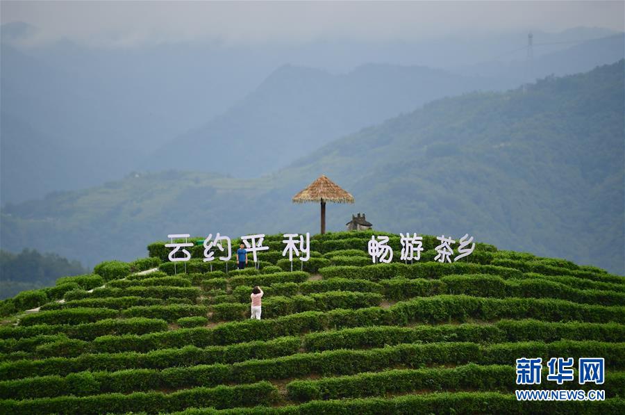 游客在安康市平利縣老縣鎮(zhèn)蔣家坪村茶園游覽(7月24日攝)。新華社記者邵瑞攝。