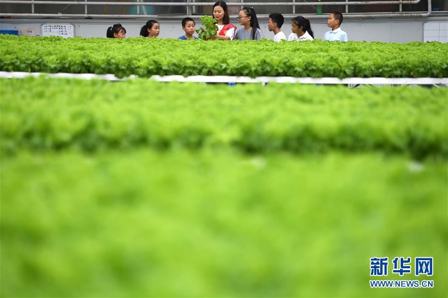 8月9日,在花崗鎮(zhèn)現(xiàn)代農(nóng)業(yè)示范區(qū)一家蔬菜種植企業(yè)內(nèi),志愿者向小朋友介紹蔬菜種植模式。當(dāng)日,安徽省肥西縣花崗鎮(zhèn)開展暑期“親近自然體驗田園”活動,邀請轄區(qū)兒童參觀花崗鎮(zhèn)現(xiàn)代農(nóng)業(yè)示范區(qū),感受現(xiàn)代農(nóng)業(yè)的魅力。新華社記者劉軍喜攝。