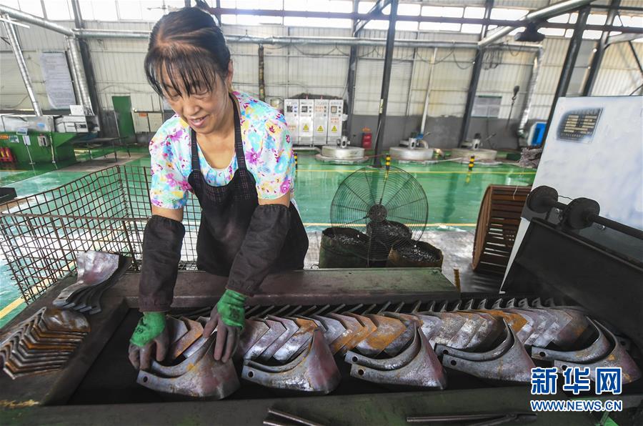 8月9日,河北大城縣南趙扶鎮(zhèn)一家旋耕機(jī)刀片生產(chǎn)企業(yè)員工在生產(chǎn)線上作業(yè)。河北省大城縣南趙扶鎮(zhèn)是該縣農(nóng)機(jī)配件行業(yè)傳統(tǒng)生產(chǎn)基地。疫情以來(lái),南趙扶鎮(zhèn)引導(dǎo)企業(yè)做好風(fēng)險(xiǎn)防范,在農(nóng)機(jī)配件行業(yè)與世界各地客商及品牌開展方式多樣的合作,出口訂單不降反升。截至目前,該縣農(nóng)機(jī)配件行業(yè)出口總銷量達(dá)8000余萬(wàn)元,較去年同期增長(zhǎng)30%。新華社記者李曉果攝。