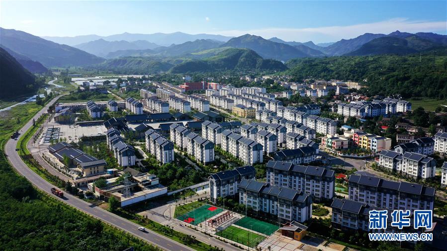 陜西洛南縣保安鎮(zhèn)倉圣社區(qū)移民搬遷集中安置點(7月27日攝,無人機(jī)照片)。