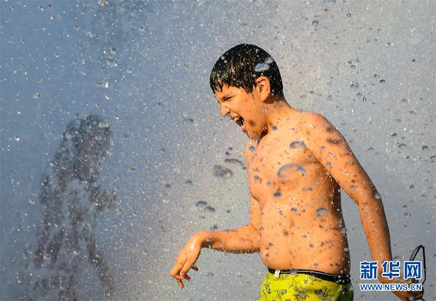 8月8日,一名兒童在德國法蘭克福一處噴泉內(nèi)戲水。 當日,法蘭克福遭遇高溫天氣,最高氣溫達37攝氏度。 新華社記者 逯陽 攝