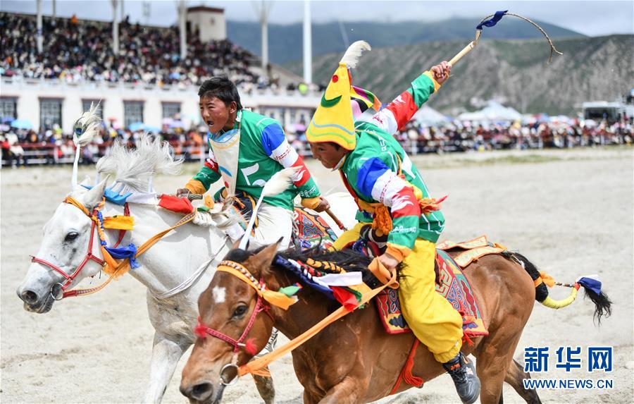 8月10日,騎手馳騁在當雄縣賽馬場。新華社記者普布扎西攝。