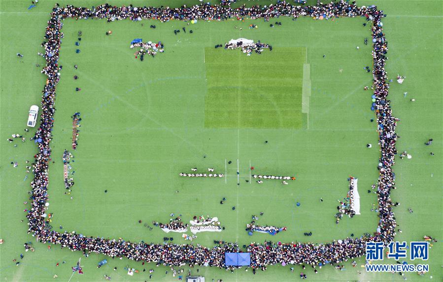 這是8月10日拍攝的拔河比賽現(xiàn)場(無人機(jī)照片)。