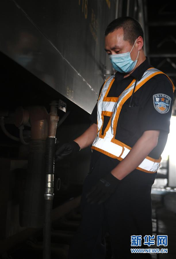 8月12日,長春火車站客運車間上水工韓冰等候列車停站。新華社記者 林宏 攝