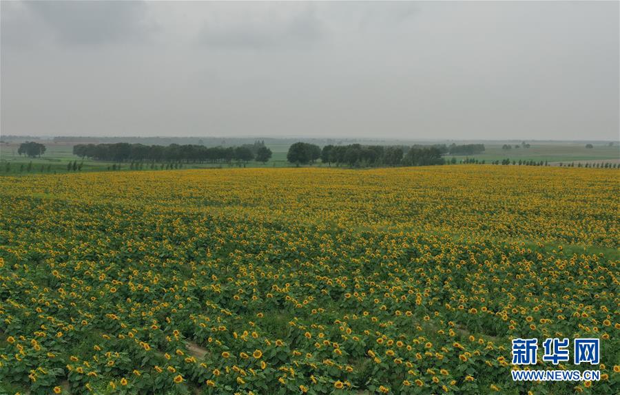8月12日在尚義縣三工地鎮(zhèn)有德元村拍攝的旱作油葵(無人機(jī)照片)。新華社記者 楊世堯 攝