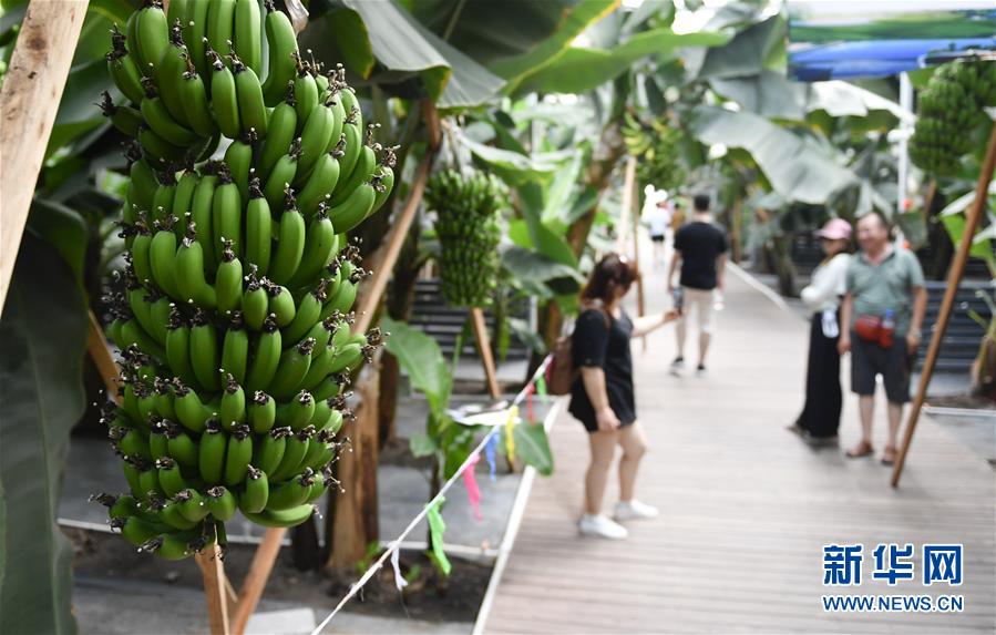 在吉林省永吉縣萬(wàn)昌鎮(zhèn)宇豐紅果木瓜產(chǎn)業(yè)園,游客在大棚內(nèi)合影留念(8月12日攝)。新華社記者 許暢 攝
