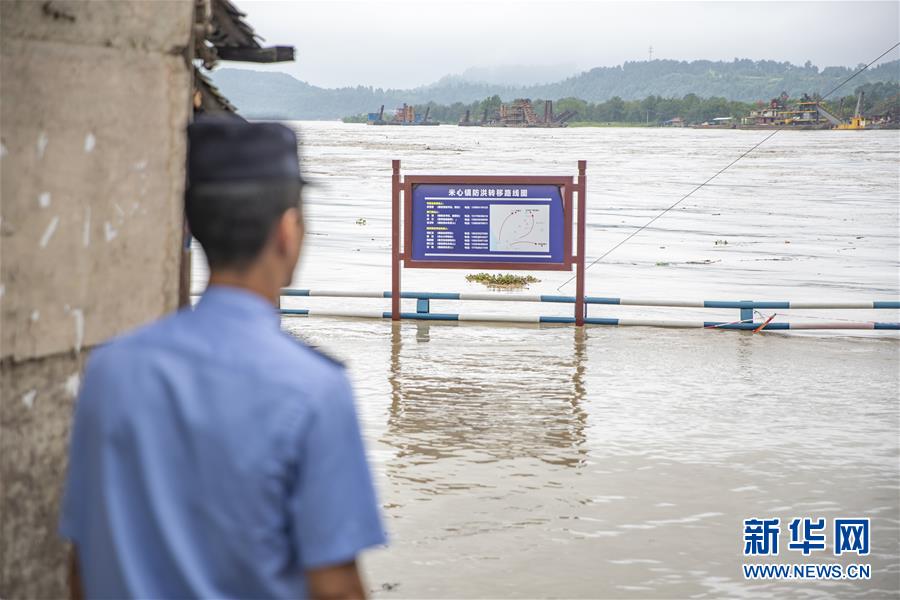 8月13日,在重慶市潼南區(qū)米心鎮(zhèn),涪江水位明顯上漲,一名工作人員在岸邊執(zhí)勤。受上游強降雨影響,嘉陵江近日出現(xiàn)明顯漲水過程,“嘉陵江2020年第1號洪水”已在嘉陵江支流涪江形成。重慶市正式啟動洪水防御Ⅱ級應急響應。據(jù)初步統(tǒng)計,截至13日16時30分,位于涪江畔的重慶市潼南區(qū),沿涪江7個鎮(zhèn)街不同程度受災,受災人數(shù)8209人,轉移人口6658人,農作物受災面積5579畝。新華社記者黃偉攝