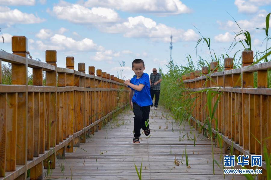 8月11日,游客在克什克騰旗達(dá)里諾爾湖北岸景區(qū)游玩??耸部蓑v旗位于內(nèi)蒙古自治區(qū)赤峰市西北部,境內(nèi)的湖泊、河流、草原、森林等自然景觀,讓人們流連忘返。新華社記者徐欽攝