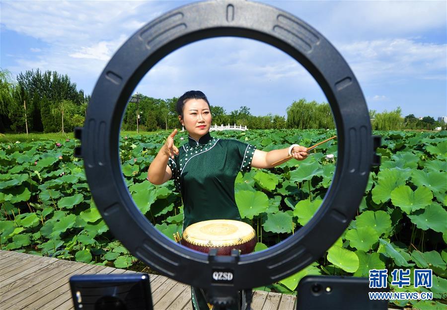 8月13日,河北省河間市西河大鼓非遺項(xiàng)目藝人李雪通過(guò)網(wǎng)絡(luò)直播表演西河大鼓。暑假期間,河北省河間市文化館推出非遺展演“云端”播系列活動(dòng),組織當(dāng)?shù)匚骱哟蠊姆沁z項(xiàng)目傳承人利用視頻直播的方式進(jìn)行線上展演,通過(guò)“云端”傳承非遺文化。新華社記者朱旭東攝