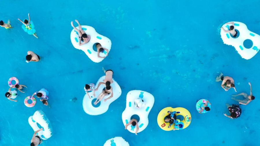 市民在南昌保利冰雪水世界戲水游玩(8月3日攝)。