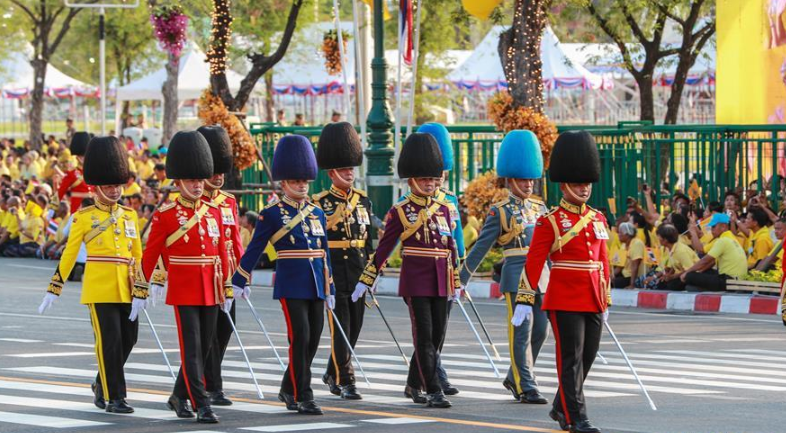 5日傍晚,哇集拉隆功乘轎從大王宮出發(fā),前往附近的臥佛寺等王家寺廟參加相關(guān)儀式。