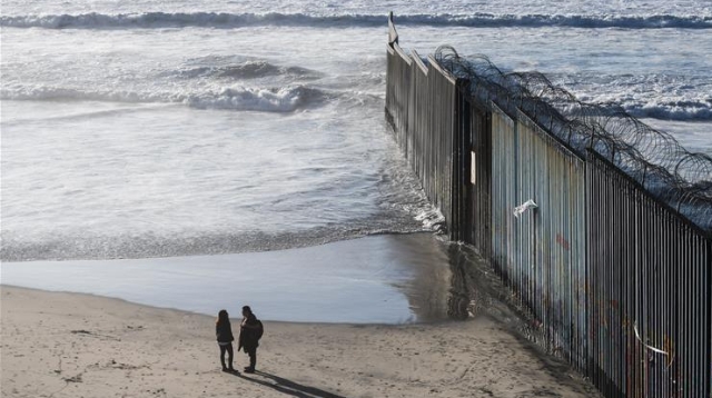 在墨西哥邊境城市蒂華納的海岸邊,一堵數(shù)米高的邊境隔離墻從海水中豎起,向東延伸,不見盡頭。