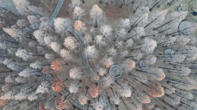 河北定州現(xiàn)霧凇景觀 吸引路人駐足拍照留念
