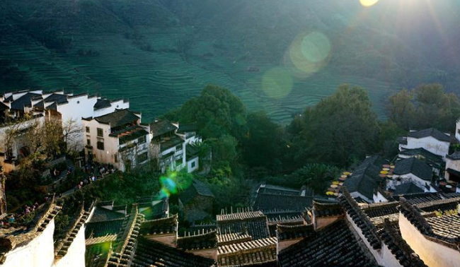 雨后放晴的江西婺源縣,藍(lán)天白云與依山傍水的徽派古村落形成了一幅幅美麗畫卷。