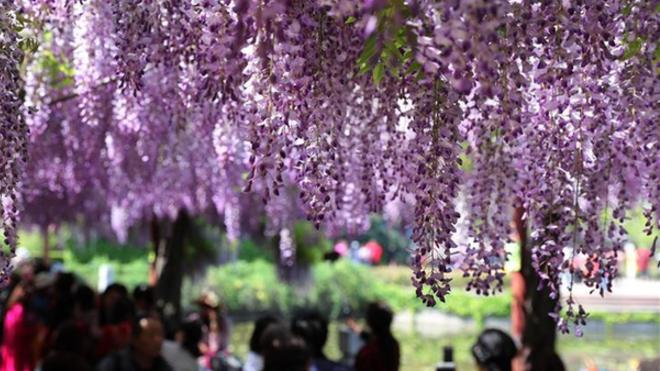 近日,上海嘉定紫藤園百余棵紫藤進(jìn)入盛放期,吸引眾多游客前來觀賞。