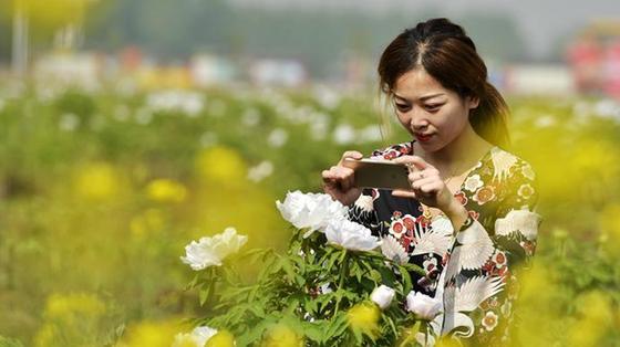 4月24日,游客在河北省沙河市興固村牡丹花田里拍照。近日,河北省沙河市興固村牡丹盛開,吸引眾多游客前來觀賞。