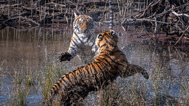 2020年6月30日報道(具體拍攝時間不詳),南非波羅克瓦克,兩只雄性非洲牛蛙為了爭奪雌性牛蛙,在池塘中打架,這樣的情形十分罕見。