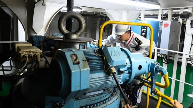 1月15日,??诤J戮止ぷ魅藛T對??吭诤?谀细鄞a頭的粵海鐵4號客滾船進(jìn)行春運前專項檢查。