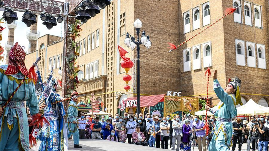 6月15日,游客在上海市愚園路上的一家酒吧享受夜晚休閑時(shí)光。
