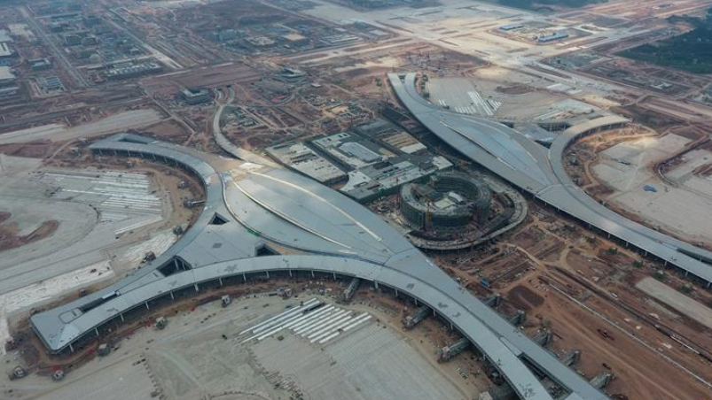 這是6月15日拍攝的成都天府國際機(jī)場(chǎng)建設(shè)現(xiàn)場(chǎng)(無人機(jī)照片)。