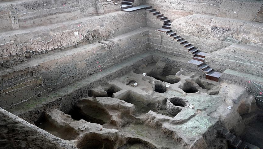 工作人員在河南省開封市州橋及附近汴河遺址進(jìn)行清理發(fā)掘。