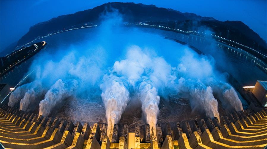 2020年7月16日,湖北宜昌,三峽樞紐右岸外送輸電線路。