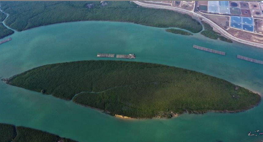 12月21日無人機拍攝的廣西合浦縣黨江鎮(zhèn)更螺圍出海口一景。新華社記者 張愛林 攝 12月21日無人機拍攝的廣西合浦縣黨江鎮(zhèn)更螺圍出??诘奈r塘。