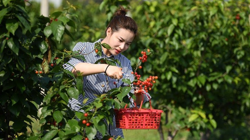 近日,安徽省肥西縣豐樂鎮(zhèn)鳳嶺苗木種植扶貧產(chǎn)業(yè)園里10多畝櫻桃進入采摘期,農(nóng)民忙著采摘櫻桃,供應市場。