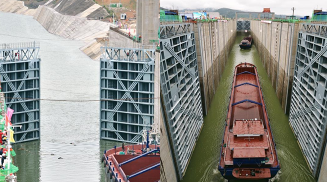 當(dāng)日,廣西大藤峽水利樞紐工程船閘試通航啟動,預(yù)計一年后可正式通航。