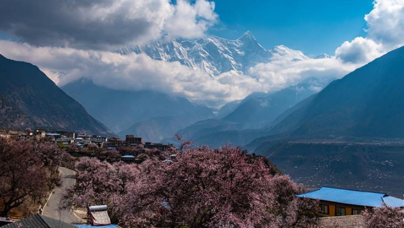 春天到來,雅魯藏布江大峽谷中的桃花次第開放,將河谷兩岸裝點(diǎn)得如詩如畫。