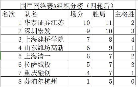見圳客戶端、深圳新聞網(wǎng)2020年3月10日訊(記者周錦春)下午兩點(diǎn),深圳宏發(fā)隊(duì)對蘇泊爾杭州隊(duì)的比賽如期在騰訊野狐圍棋平臺展開。這是2020年“華為手機(jī)杯”中國圍棋甲級聯(lián)賽網(wǎng)絡(luò)熱身賽第四輪。截止下午4:30分左右,四臺先后結(jié)束,深圳宏發(fā)隊(duì)3:1勝出。此役,深圳宏發(fā)隊(duì)主將時(shí)越和石豫來、陶欣然三戰(zhàn)三捷,唯戎毅一盤敗北。目前,深圳宏發(fā)隊(duì)四輪戰(zhàn)罷積9分,在A組暫居第二位。A組第一名為華泰證券江蘇隊(duì),是下一輪深圳宏發(fā)隊(duì)的對手,時(shí)間是明晚7點(diǎn)。