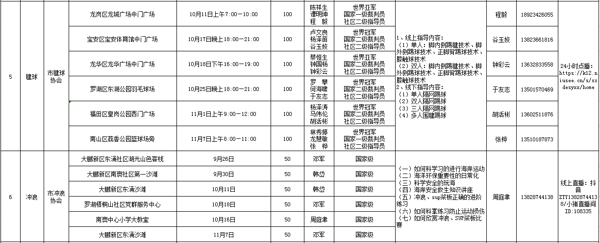 “科學健身指導(dǎo)活動”由深圳市文化廣電旅游體育局主辦,旨在通過分批、分點等方式,在做好疫情防控的同時,針對不同人群進行戶外健身運動個性化指導(dǎo)服務(wù),助力全市煥發(fā)新活力,促進全民健身高質(zhì)量發(fā)展?;顒幼?月2日啟動以來,已有眾多一線社會體育指導(dǎo)員和體育產(chǎn)業(yè)專家通過深入社區(qū)現(xiàn)場教學、錄制視頻等方式,向廣大市民宣傳、講解科學健身的知識和方法。