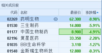 智通財(cái)經(jīng)APP獲悉,受產(chǎn)業(yè)政策影響,醫(yī)藥股普跌,藥明生物(02269)領(lǐng)跌板塊,連續(xù)三個(gè)交易日下挫,跌逾兩成。截至10時(shí)26分,跌8.33%,報(bào)價(jià)62.75港元,成交額2.27億。
