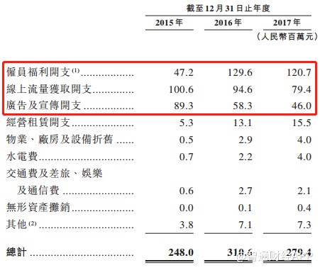 土巴兔的銷售人員開支從2015年的4720萬元大幅增至2016年的1.29億元,并在2017年維持1.2億元左右高位。不過隨著公司規(guī)?;\營的展開,公司線上買量開支卻從1億元降至7940萬元。