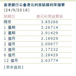 7天港元HIBOR報(bào)3.26714%,上升137.9個基點(diǎn),為2008年9月以來最大漲幅。