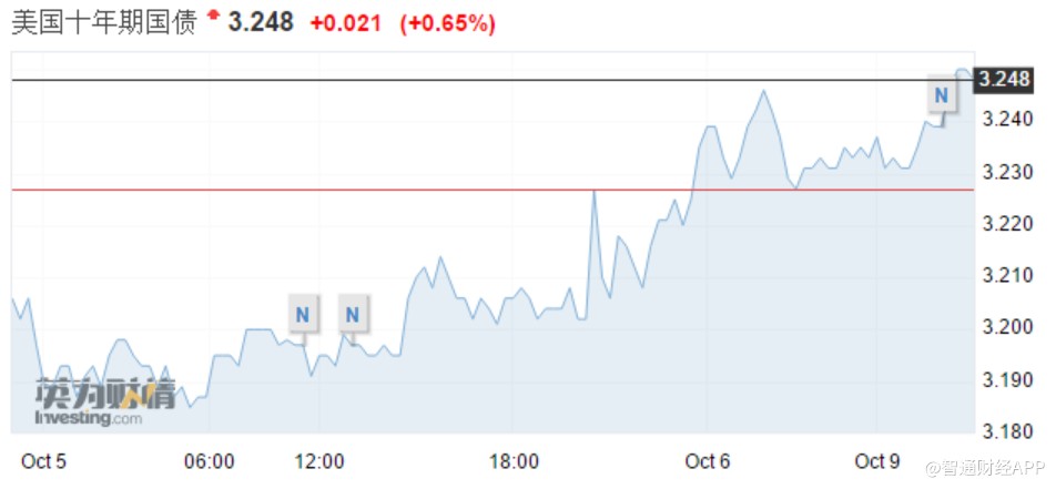 美債持續(xù)遭遇拋售,收益率沖高勢頭不減。智通財經APP獲悉,周二亞市早盤,美國30年期國債收益率觸及3.434%,再度刷新四年新高。10年期美債收益率升至3.248%,刷新七年新高。昨日美債市場因哥倫布日休市一天。