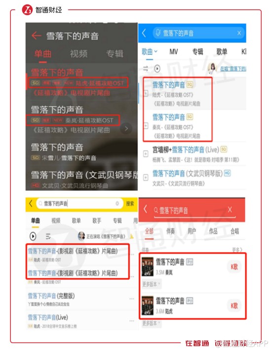 以此前熱播劇《延禧攻略》的片尾曲《雪落下的聲音》為例。這首歌的版權由QQ音樂獨家擁有,并在APP中擁有“獨家”的標識。但實際上,該歌曲在酷狗音樂、酷我音樂和全民K歌上同樣可以播放,可以說騰訊音樂版權在公司旗下4個產品是通用的。