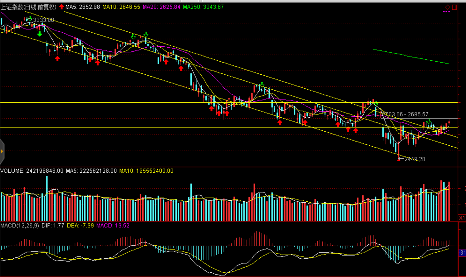技術(shù)面:上周周線量價(jià)配合震蕩上揚(yáng)趨勢(shì),自10月19日見底以來運(yùn)行21個(gè)交易日,短期指數(shù)仍有反復(fù)上揚(yáng)需求,本周20周均線面臨壓力(滬綜指2700點(diǎn)一線、創(chuàng)業(yè)板1430點(diǎn)一線)。