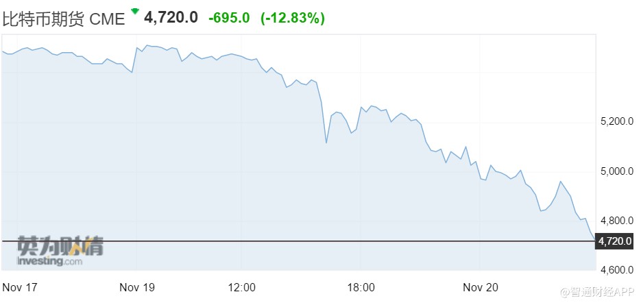 智通財經(jīng)APP獲悉,因悲觀情緒持續(xù)存在,比特幣在幣值跌破6000美元長達(dá)一周之后,昨日又暴跌12.83%,跌破5000美元關(guān)口,報4720美元。過去7天,比特幣跌超22%;今年以來累跌60%以上;與歷史高點(diǎn)相比累跌70%以上。