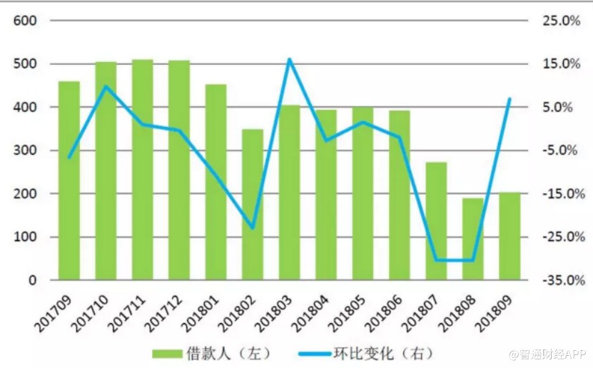 從統(tǒng)計(jì)數(shù)據(jù)可以看出,從今年6月開(kāi)始,P2P網(wǎng)貸行業(yè)借款人人數(shù)出現(xiàn)大幅下滑,重疊上圖正是行業(yè)監(jiān)管加強(qiáng)開(kāi)始的時(shí)間點(diǎn)。到了9月,借款人人數(shù)首次開(kāi)始回升,說(shuō)明市場(chǎng)已經(jīng)感受到監(jiān)管后行業(yè)規(guī)范化的提高,這正說(shuō)明市場(chǎng)對(duì)P2P行業(yè)信心正在出現(xiàn)回升。
