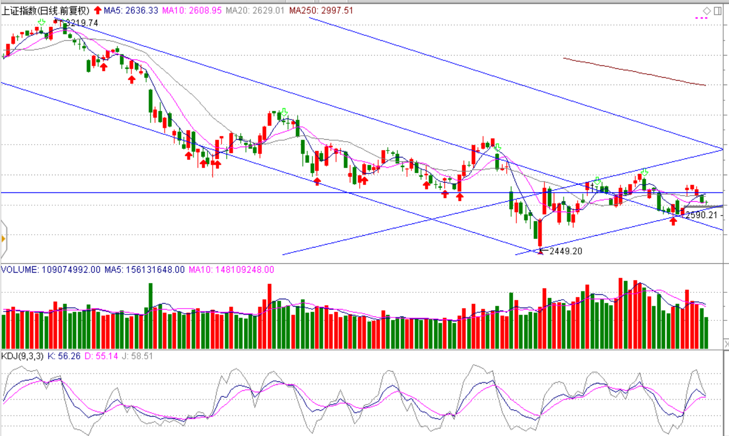 經(jīng)過持續(xù)幾天縮量調(diào)整,短期調(diào)整空間有限,窒息量結(jié)構(gòu)后如配合成交量放大則視為短期企穩(wěn)信號(hào),關(guān)注滬綜指2575點(diǎn)、創(chuàng)業(yè)板1326點(diǎn)一線支撐,預(yù)計(jì)本周企穩(wěn)回升。